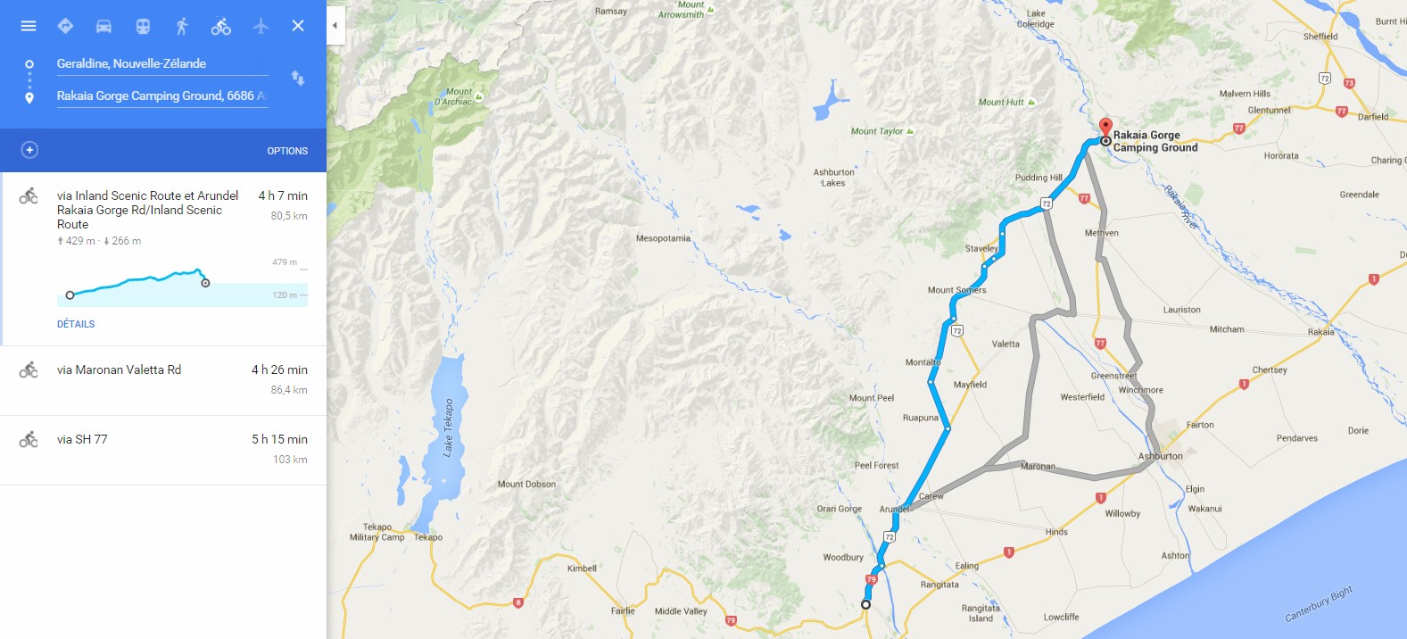 Geraldine->Rakaia 95 kms